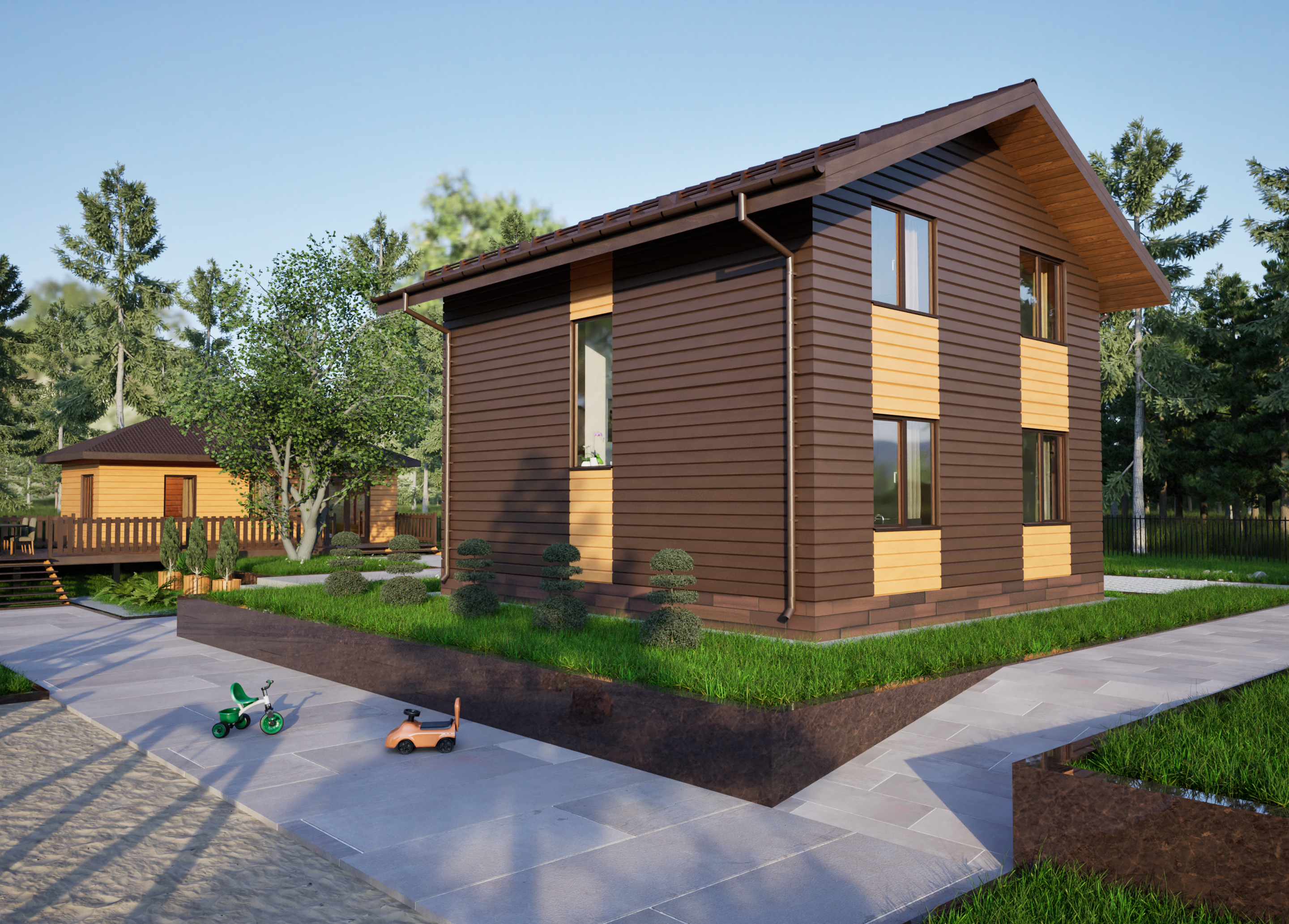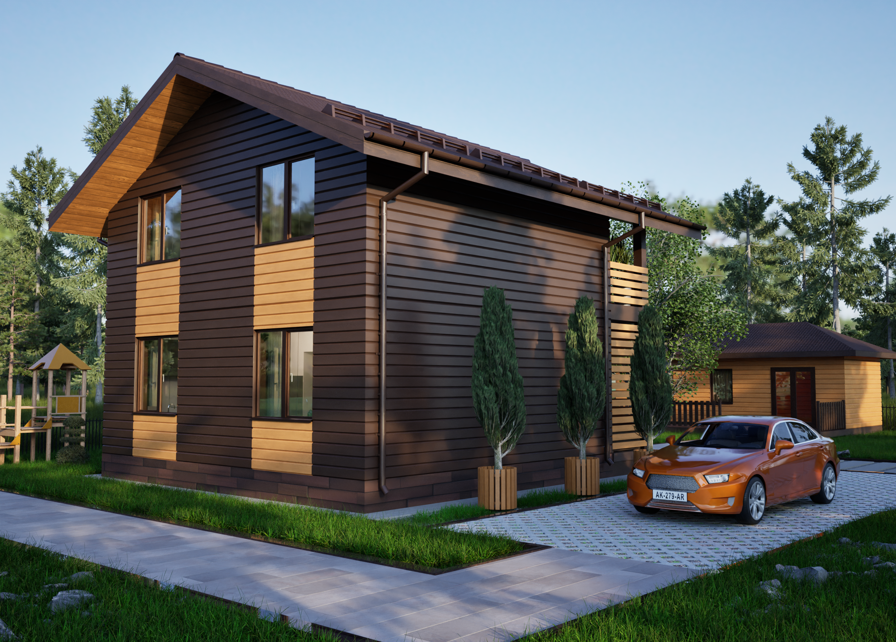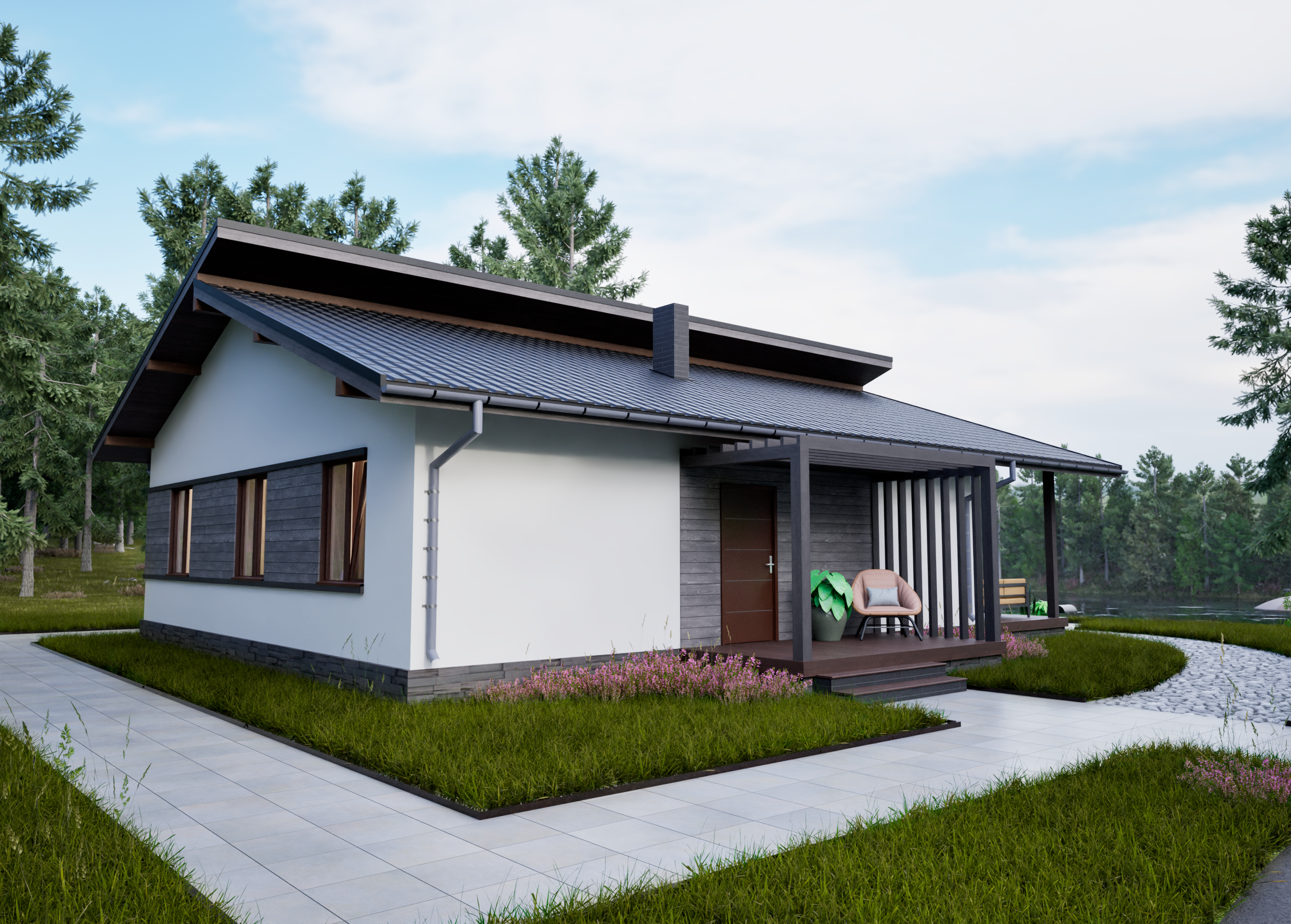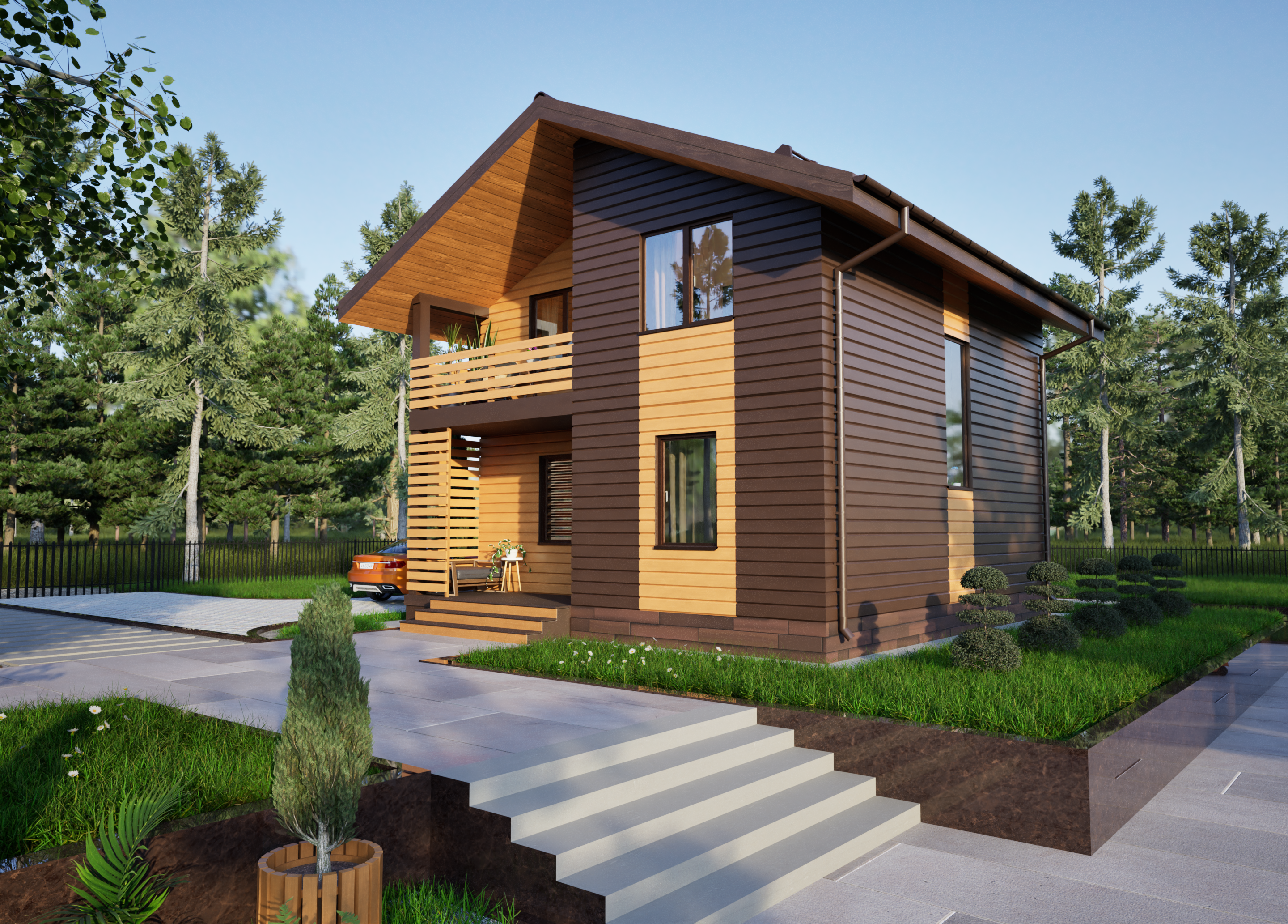 Реалистичные перспективные виды дома со всех сторон;