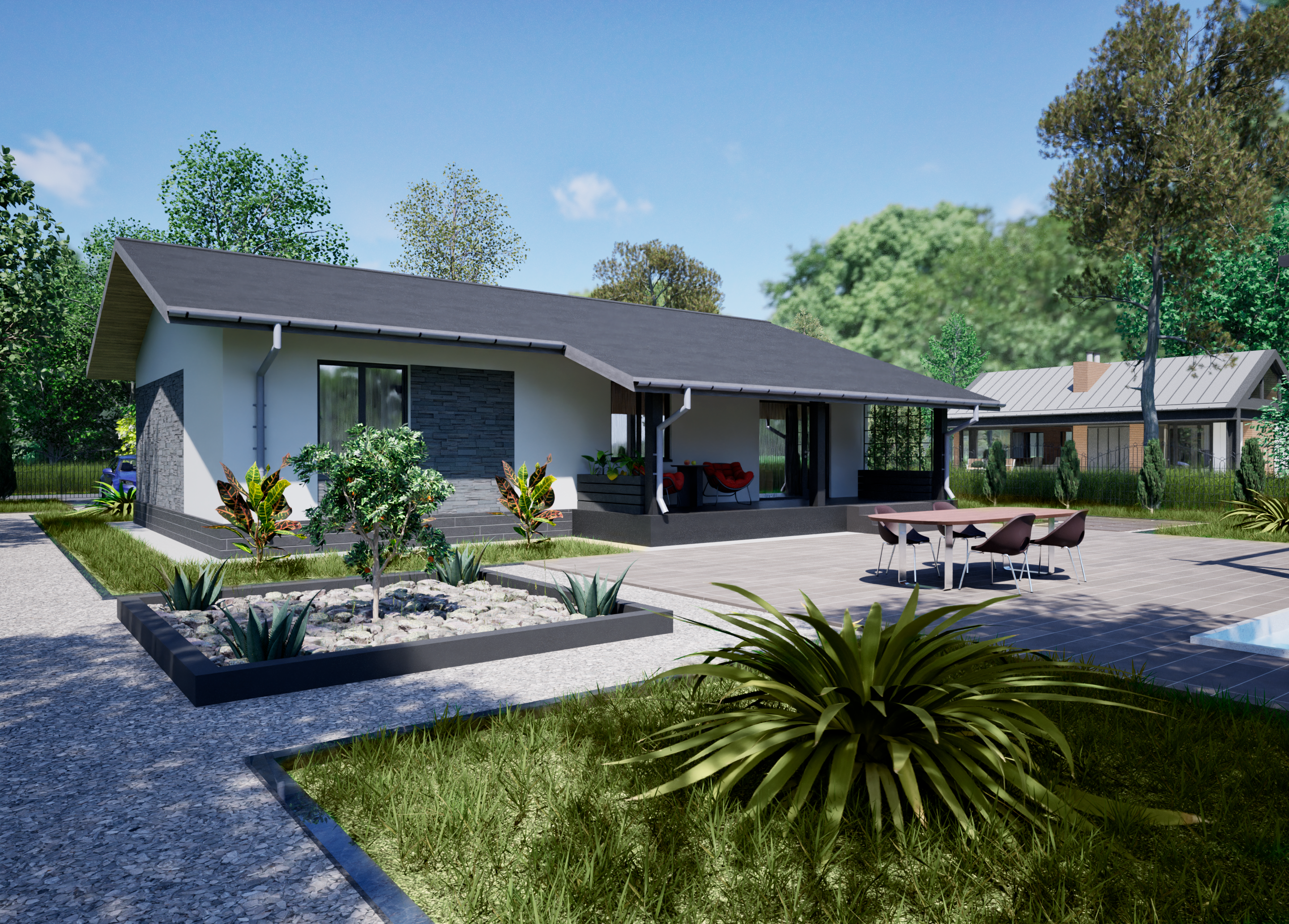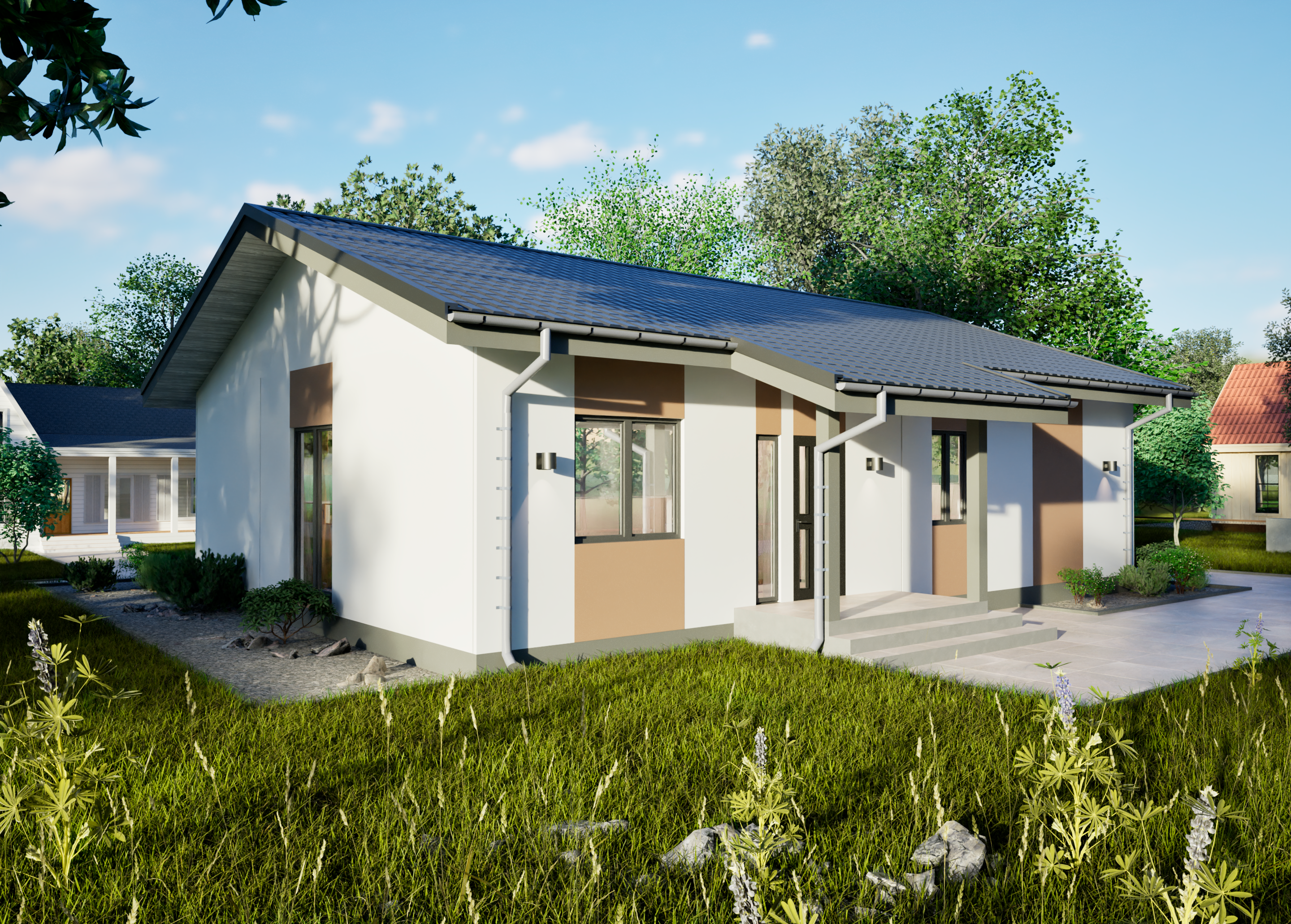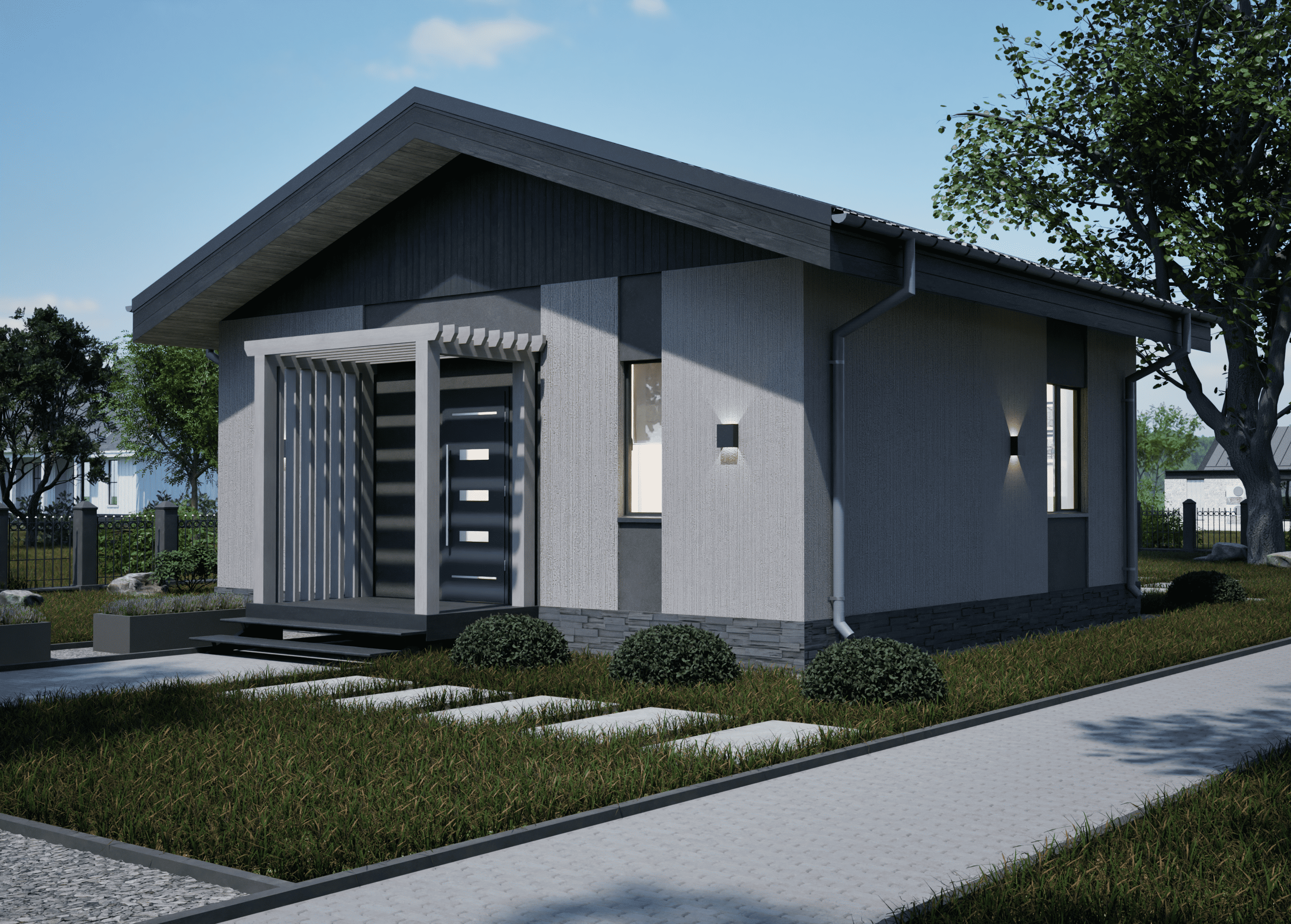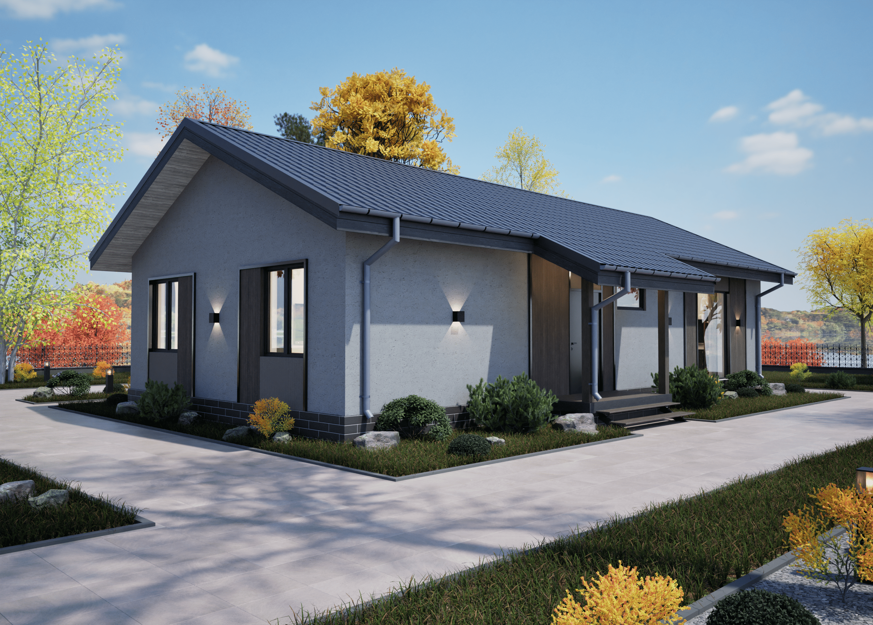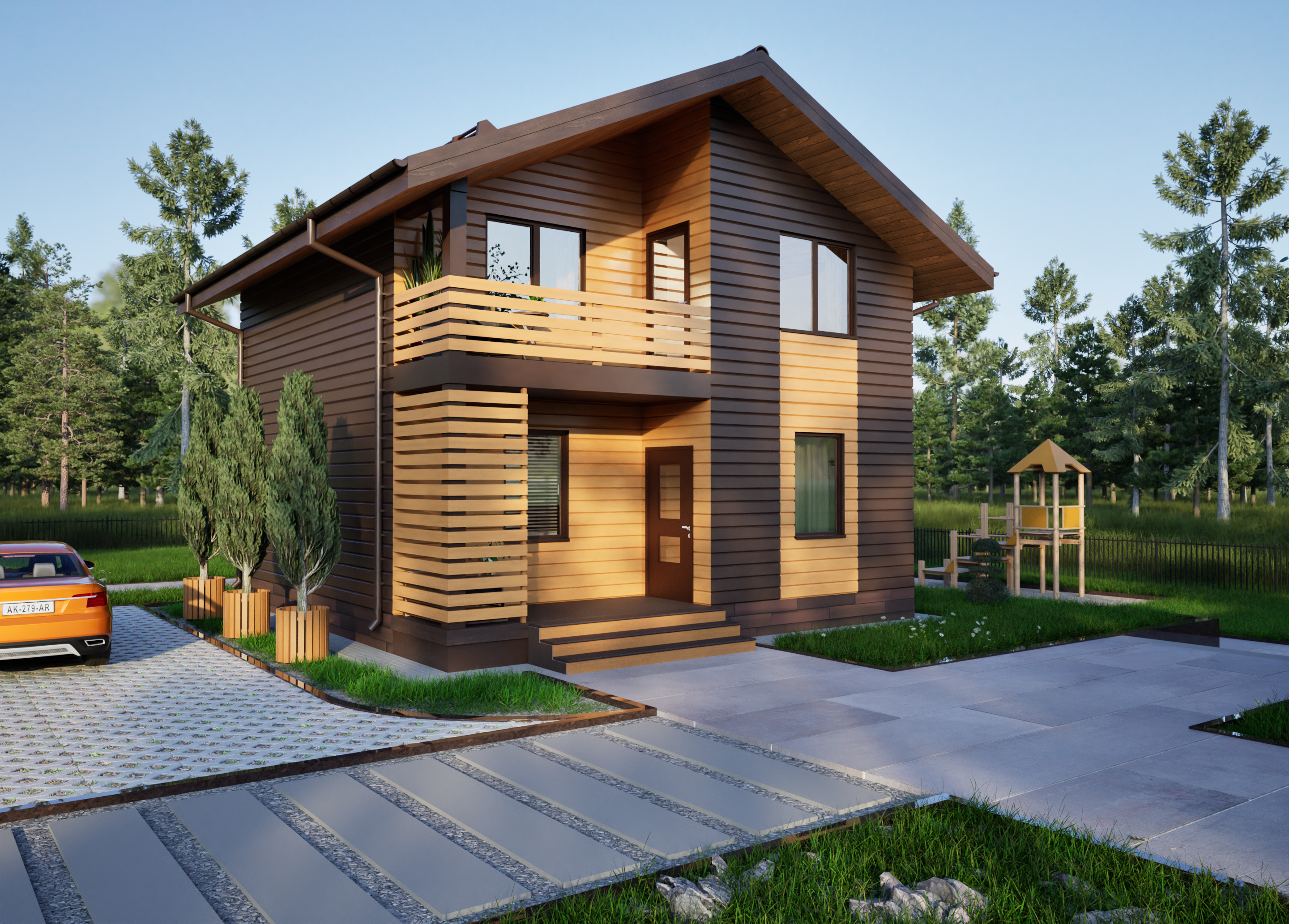 Реалистичные перспективные виды дома со всех сторон;