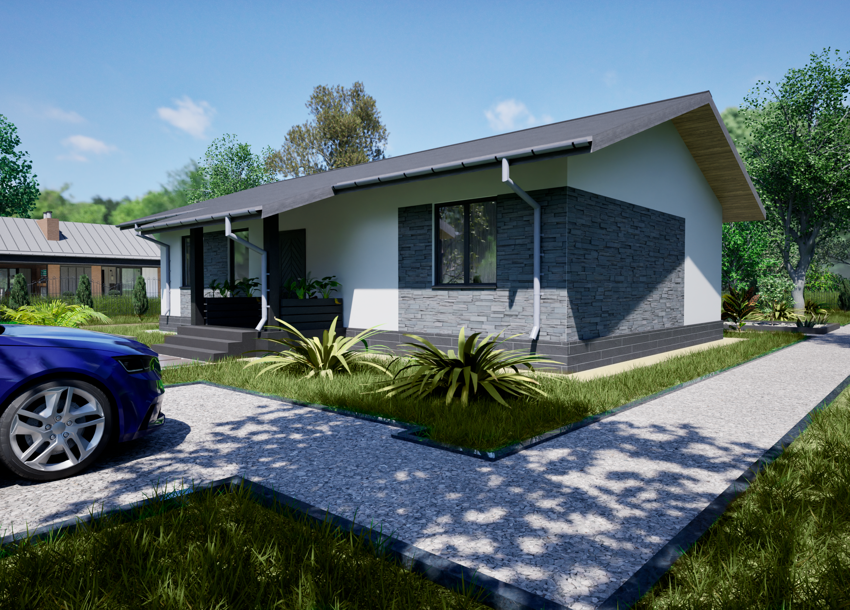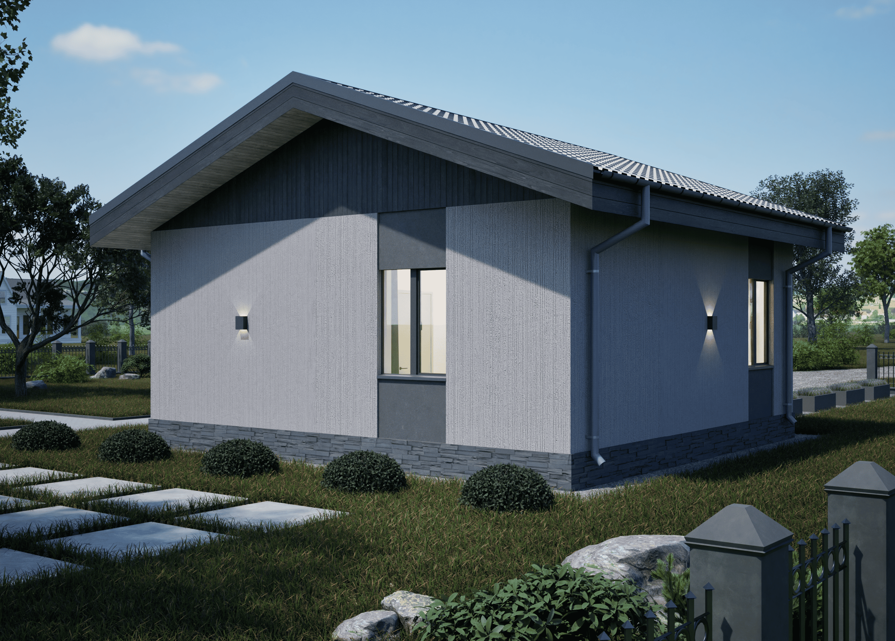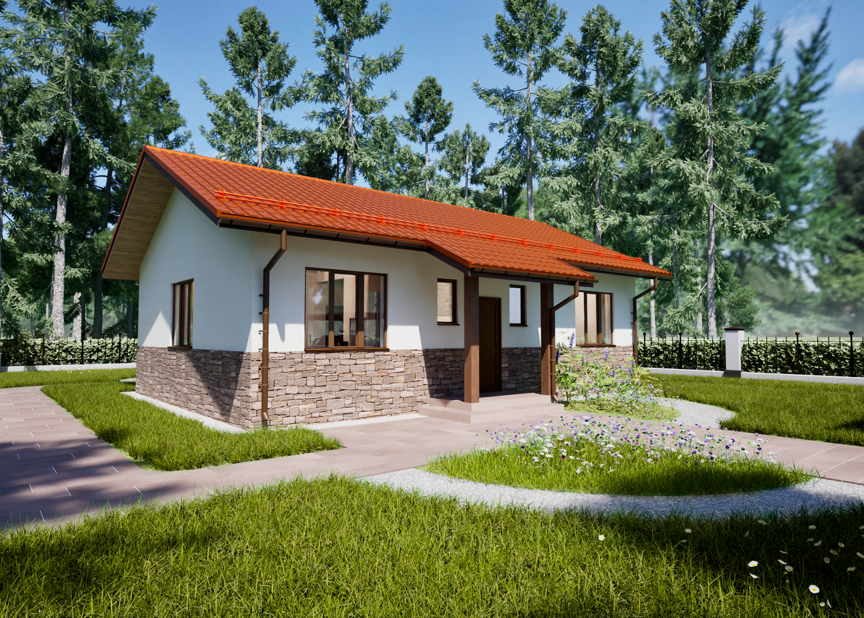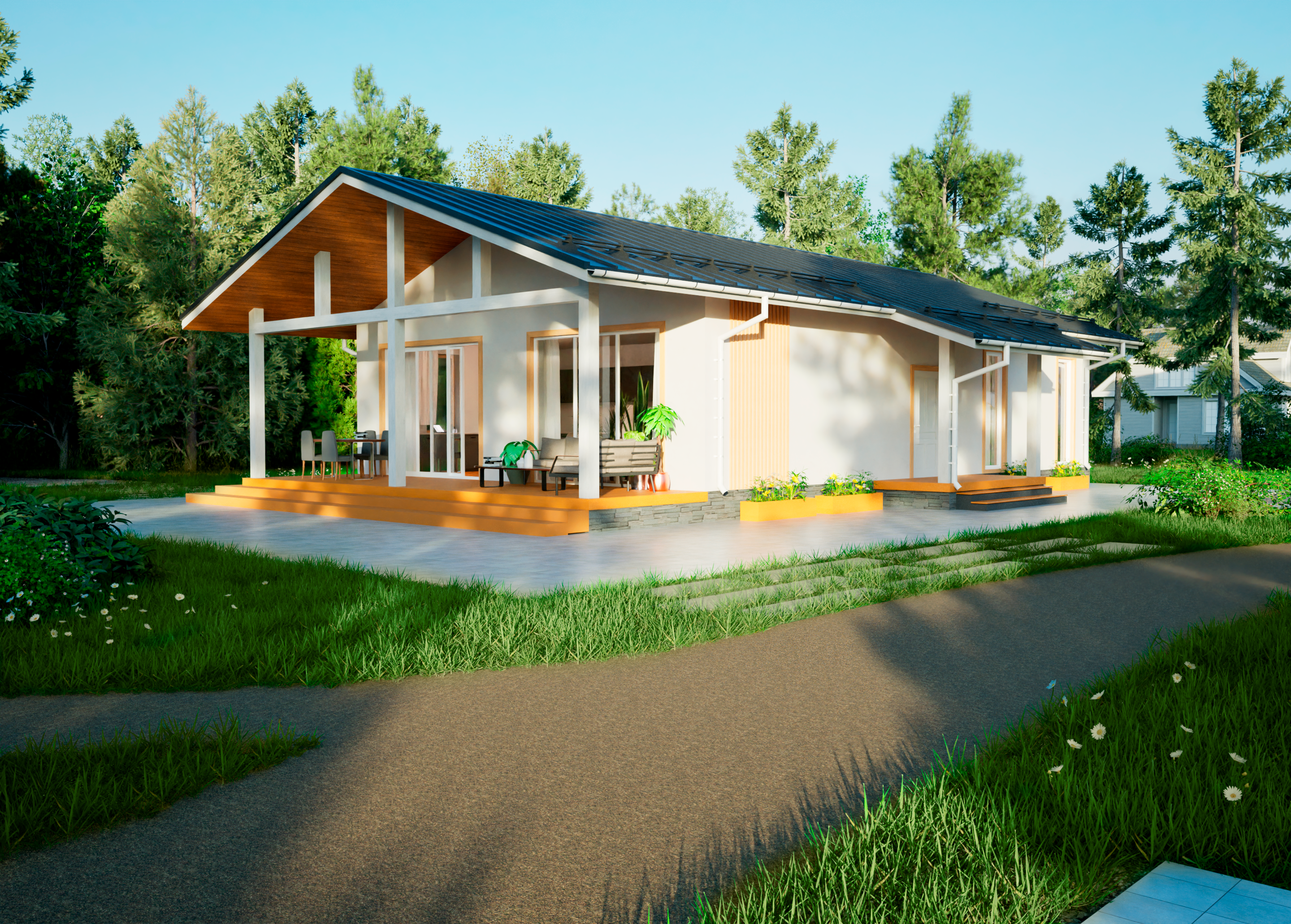 Реалистичные перспективные виды дома со всех сторон;