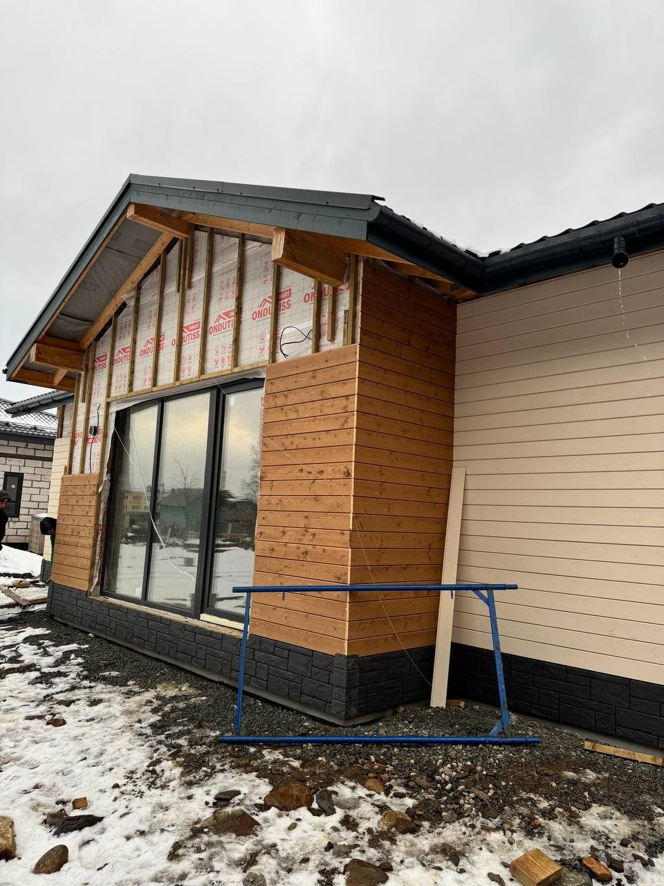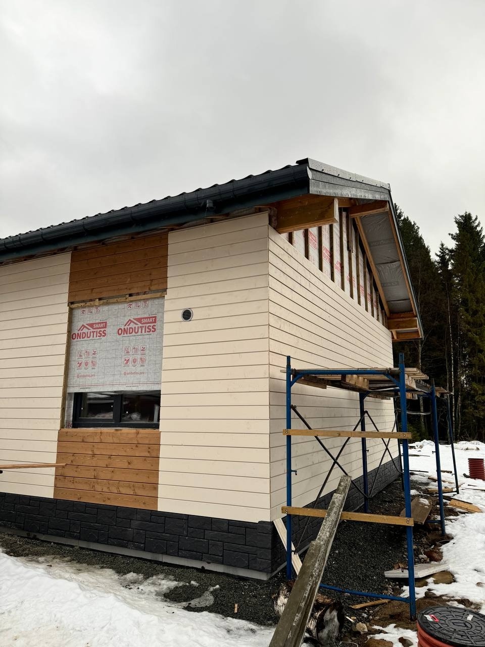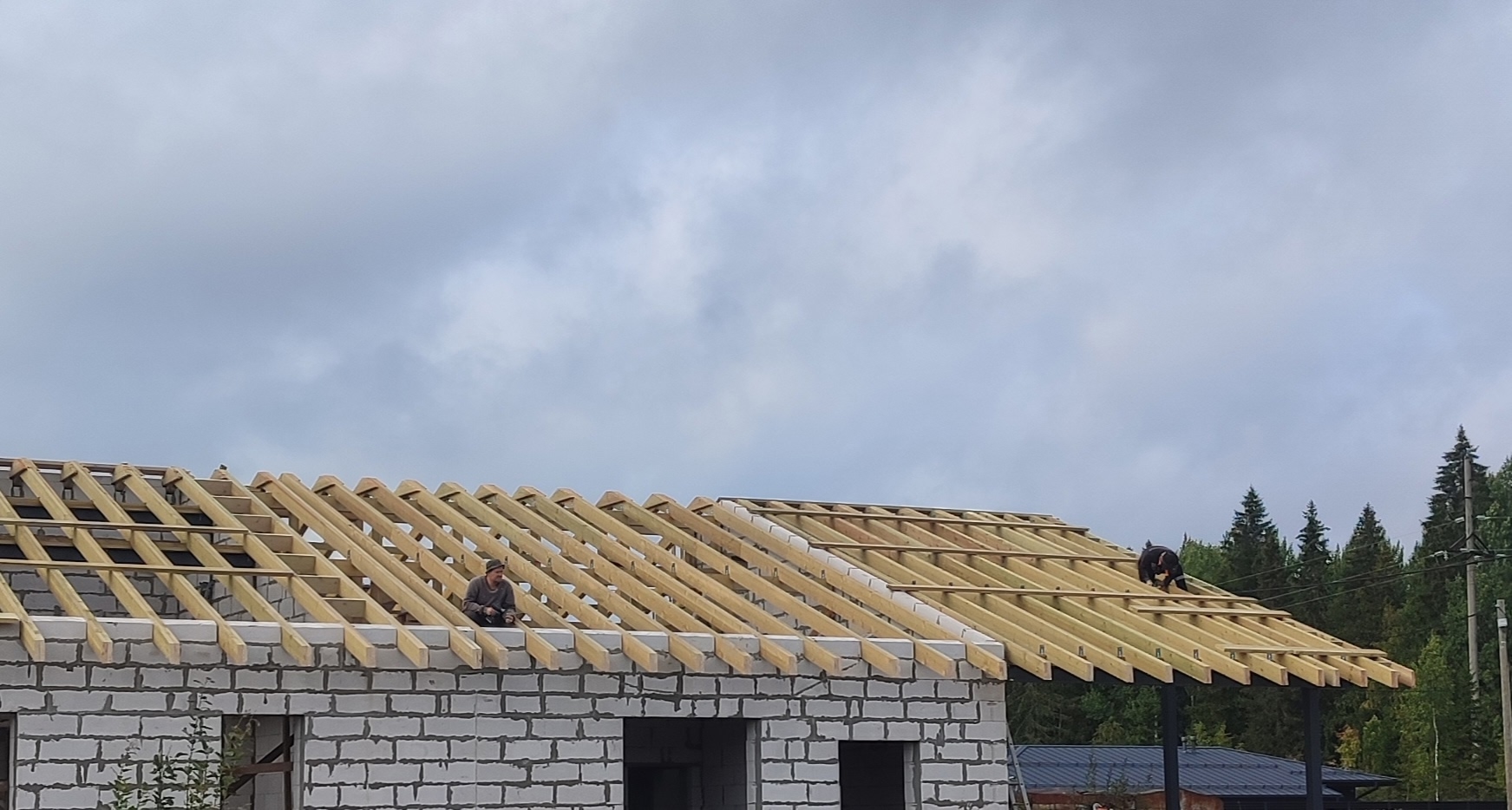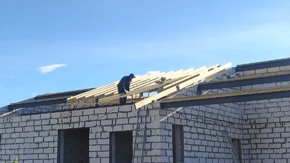 Монтаж стропильной и подстропильной систем для выбранного варианта кровли (двускатная, вальмовая и тд.);