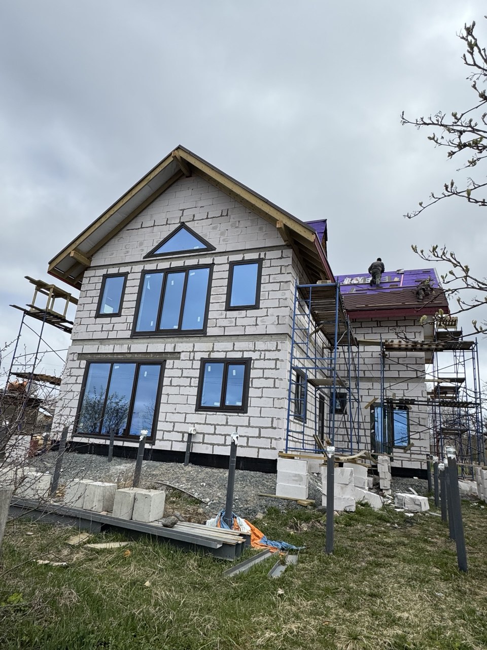 Устройство стропильных систем, утепление и монтаж финишного покрытия (металлочерепица, фальц, мягкая кровля).